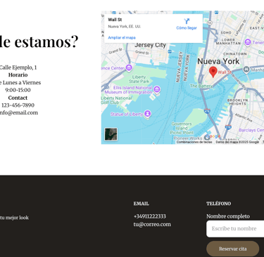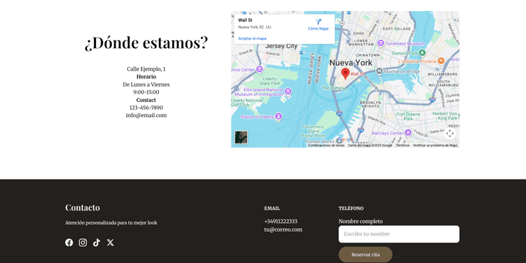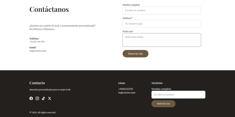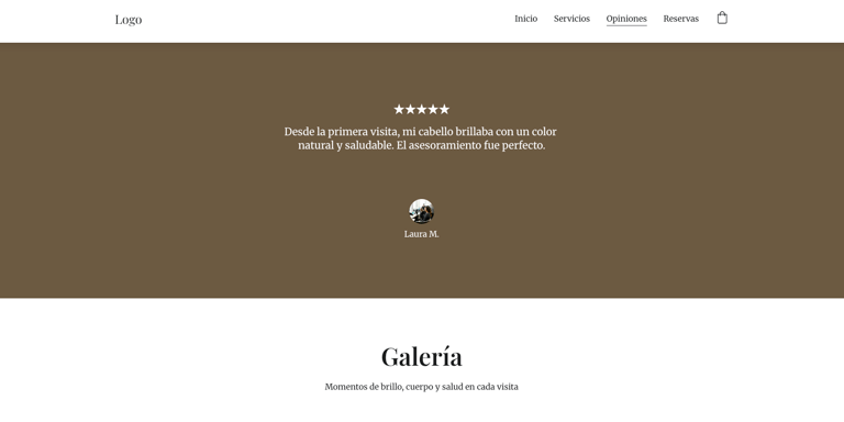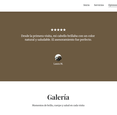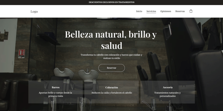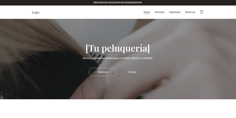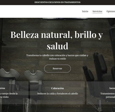 Ejemplo de sitio web para una peluquería. Colores, imágenes e información adaptados según el cliente.